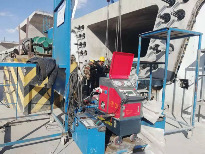 相對于傳統的人工操作張拉模式,系統能夠根據施工要求做到預應力梁預施應力的精準控制,兩端同步平衡張拉。